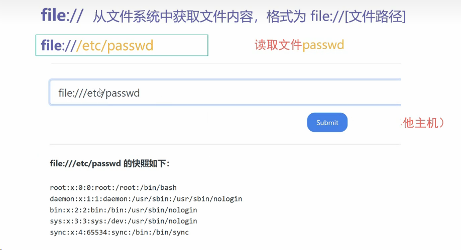 - file:// 从文件系统中获取文件内容,如file:///etc/passwd